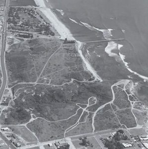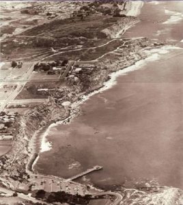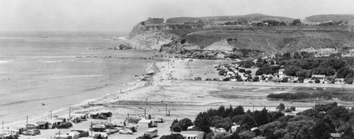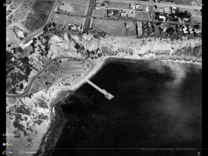 The first photo shows Dana Point before the harbor, and while San Juan Creek was an estuary. Water from the San Juan Creek has been used for generations to plant crops, grow cattle and sustain. Otis Chandler, publisher of the LA Times who married the queen of California cotton purchased the point in the early part of the 20th century. In the foreground of the picture are trailers on the beach in Doheny State Park. Donated by the Forster Family, the state park is still a favorite RV destination, and for day use to the south. The beach house rental is the fifth house from the southern end of Doheny State Park.